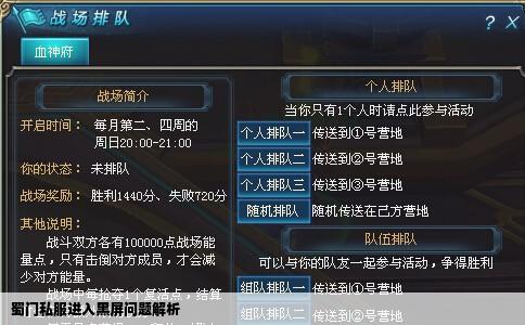 在玩家群体中,蜀门私服作为一种非官方运营的服务器,常常因为其独特的游戏体验吸引着众多玩家。不少玩家在尝试进入蜀门私服时遇到了黑屏的问题,这严重影响了玩家的游戏体验。本文将针对这一问题进行详细的分析和解答。